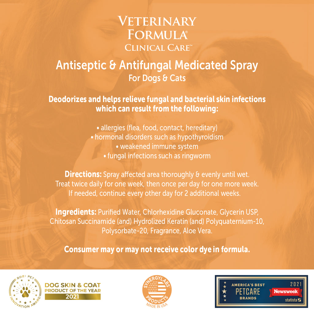 For best results, use with Veterinary Formula Clinical Care® Antiseptic & Antifungal Shampoo.