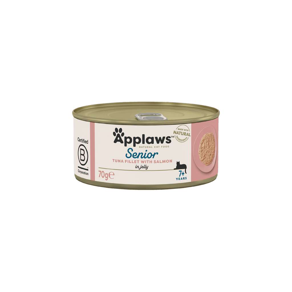 Looking for complete pet food to keep your senior cat healthy? Consider Applaws Senior Tuna with Salmon in Jelly Wet Cat Food. This formula includes natural sources of essential fatty acids, EPA and DHA, from tuna and salmon. Plus, it's made with all-natural ingredients and doesn't contain additives. The composition of this wet cat food is 40% tuna loin and 8% salmon fillet.