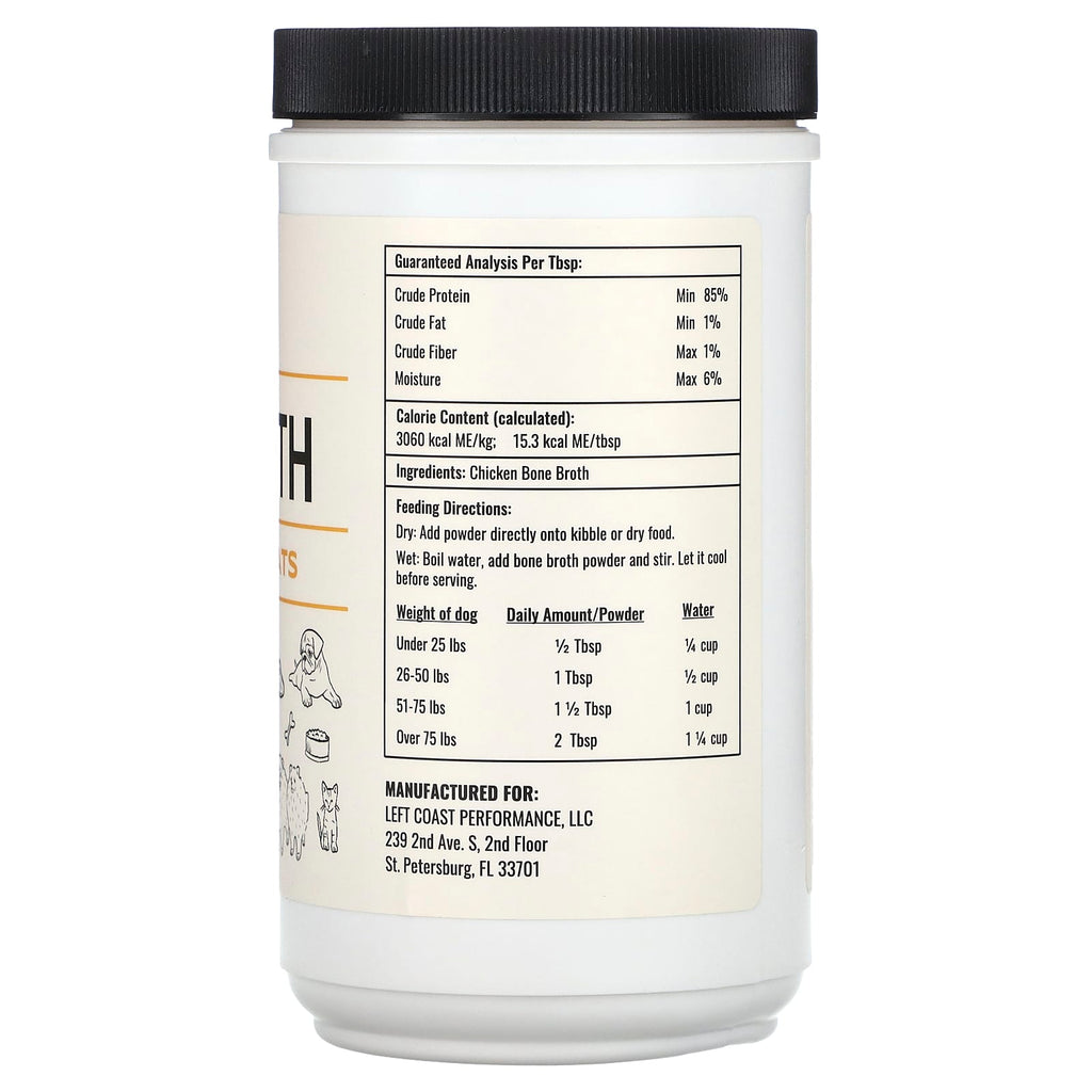 Wet: Boil water, add bone broth powder and stir. Let it cool before serving.