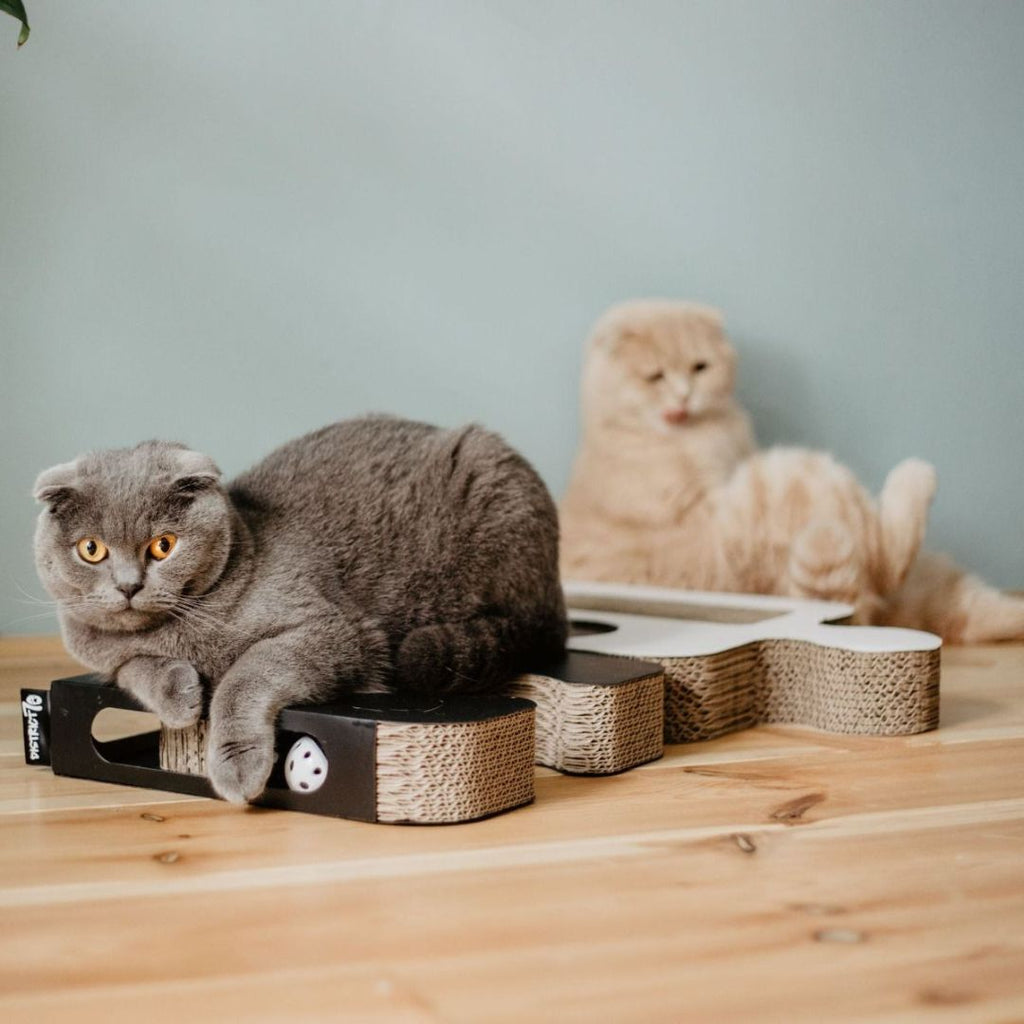 District 70 Puzzle Cardboard Cat Scratch Toy is a fun and eco-friendly product that combines a scratch pad and intelligence toy in two colors. This toy features a scratch pad that will entice your cat to scratch and provides two balls with bells that roll around for interactive fun. With multiple pieces to complete the jigsaw, cats of all ages will enjoy hours of entertainment. The product is available in two colors, Black or White, and measures 30 x 42 x 6 cm.