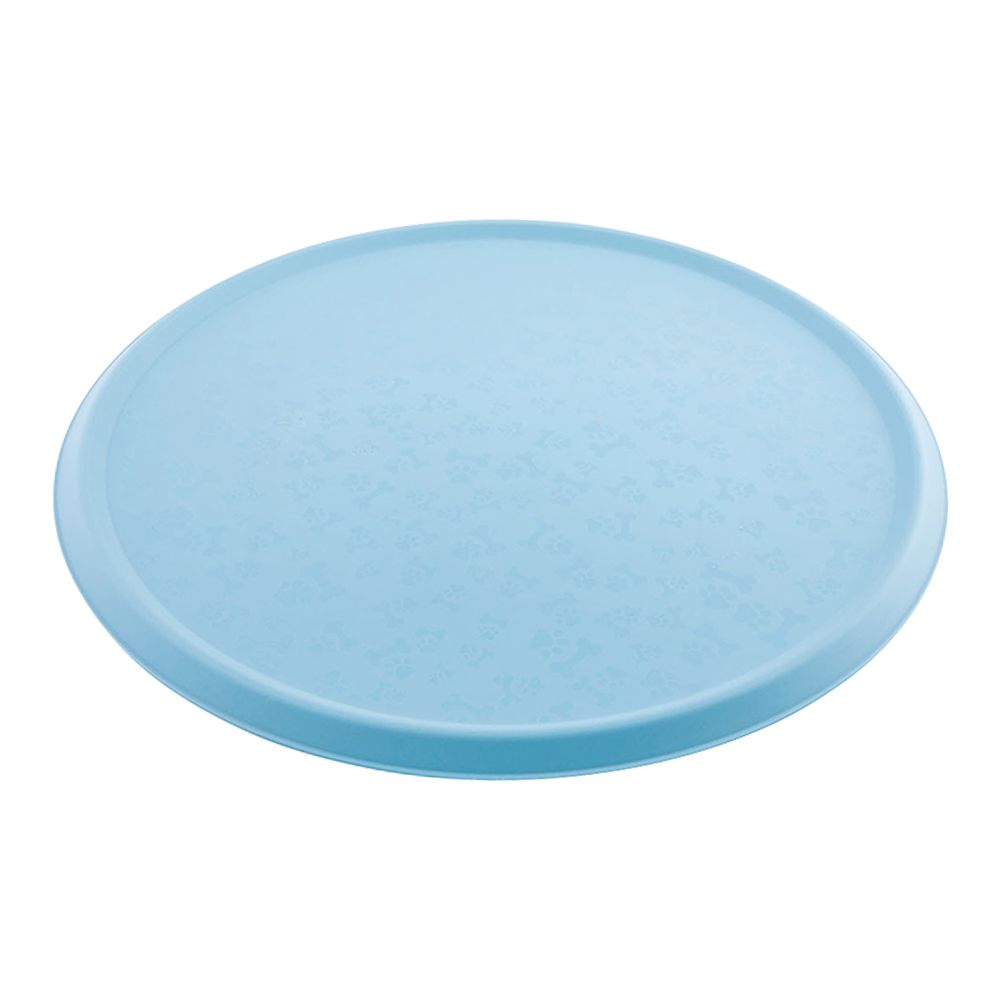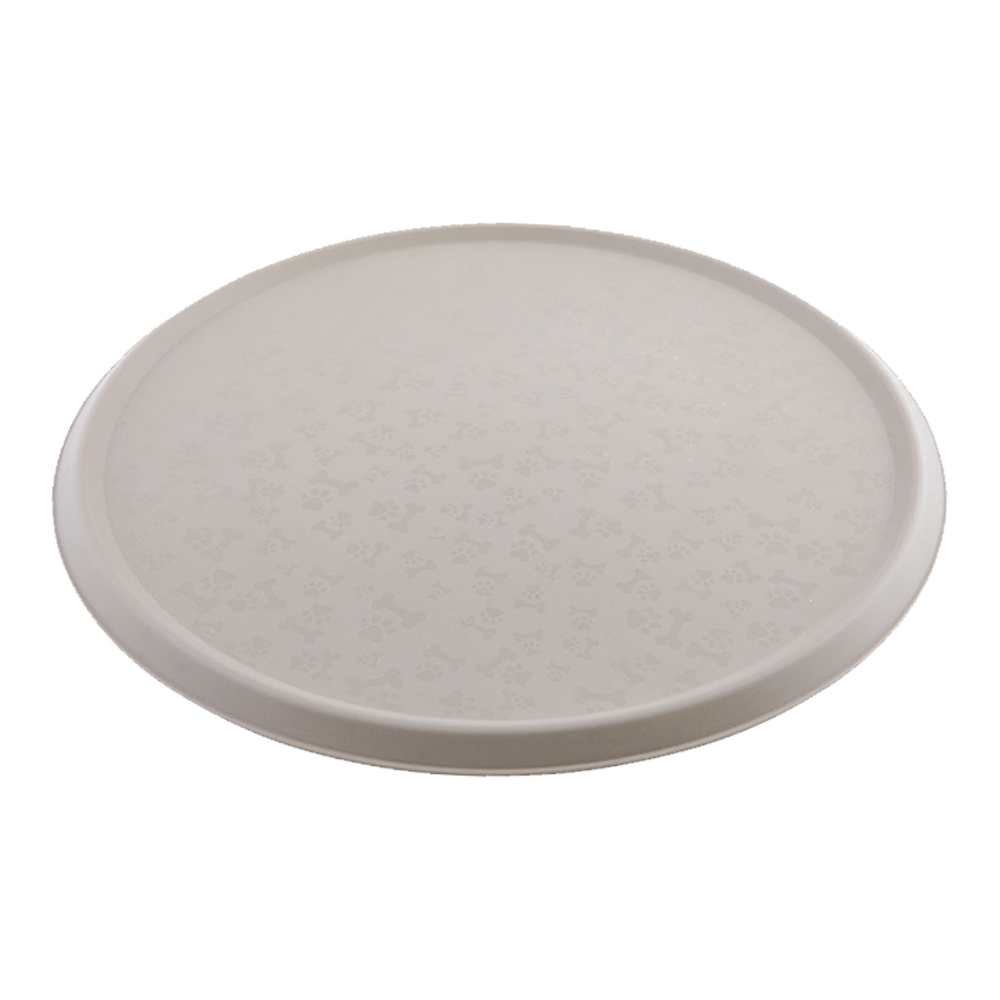 Paw and bone design round feeding mat, great for messy pets who love to spill their food and drink. Protects floors while adding a modern touch to any space. The paw and bone embossed design is glossy, while the mat has a matte finish. Works perfectly when being used with nonslip bowls. Smart design and crafted using BPA free 100% pet safe plastic, can be used either indoors or outdoors.