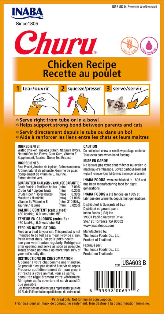 Inaba Churu Grain Free Chicken Recipe Cat Treat