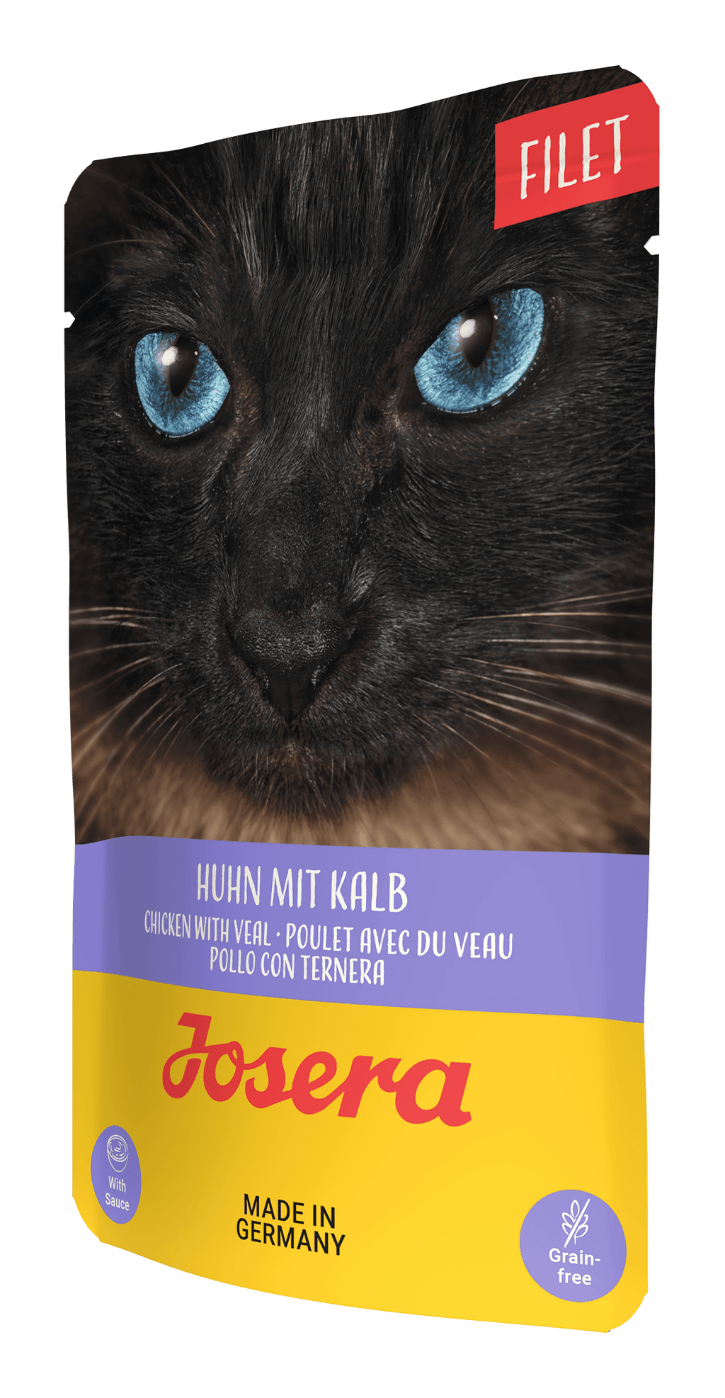 Josera Filet offers delicious meat and fish varieties with plenty of juicy little pieces of filet that provide an incomparable taste experience. Josera Filet contains a high proportion of meat, tasty offal and beneficial vitamins and minerals ideal as a wheat-free complete feed for your little gourmet.