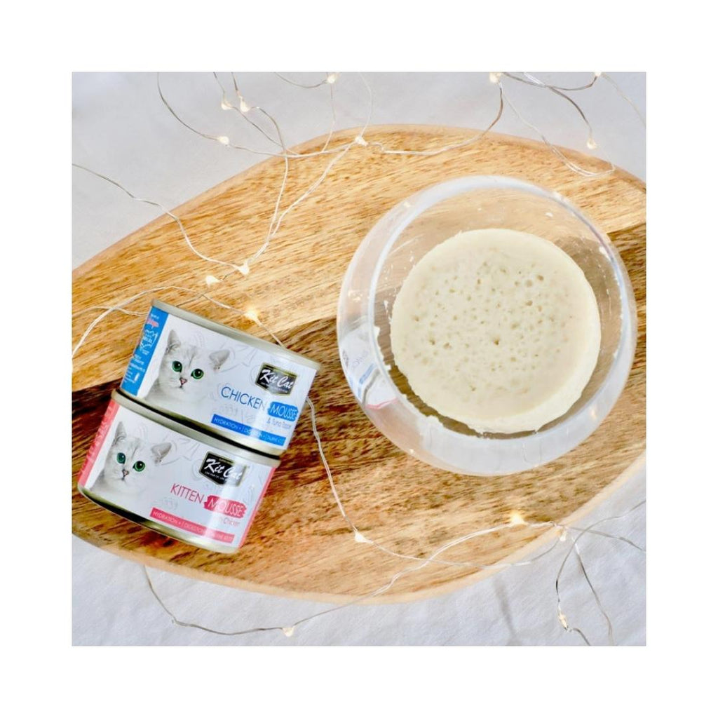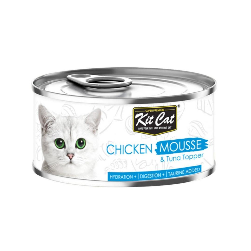Crafted with a smooth texture of deboned tuna with chicken topping, Kit Cat Tuna Mousse is made easier for your adults or senior cats for better digestion and hydration. Rest assured that your cats are kept hydrated at all times with this high moisture grain-free diet.
