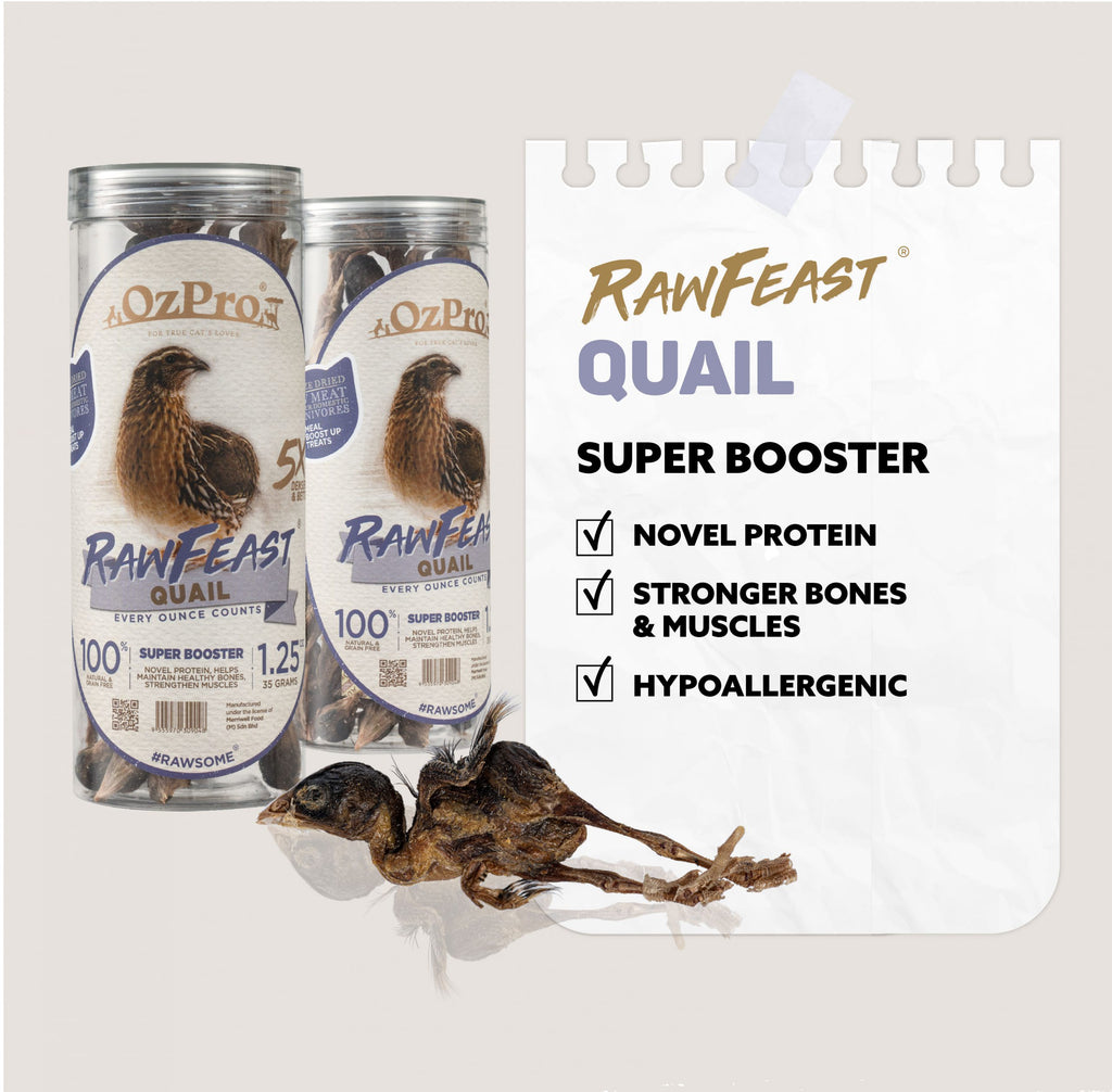 Quail, lean meat, low calorie, and high protein, and high in phosphorus and iron. A great option for cats and dogs as a natural source of essential vitamins. Quail is also a novel protein, making it a good solution for pets with food allergies to proteins such as beef or chicken.