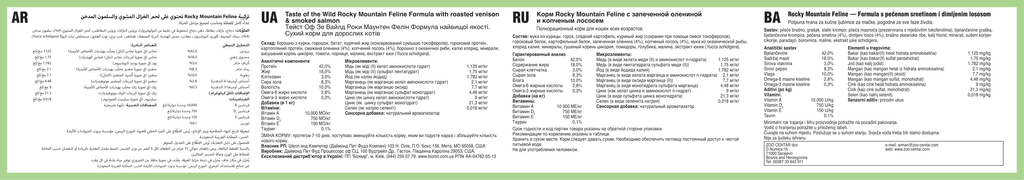 AAFCO Statement: Taste of the Wild Rocky Mountain Feline Recipe is formulated to meet the nutritional levels established by the AAFCO Cat Food Nutrient Profiles for All Life Stages.