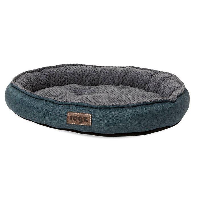 Rogz Athens Oval Bed has a classic shape and soft, two-textured fabric which makes it effortlessly luxurious and stylish. The Athens Oval Bed is also filled with 100% non-toxic recycled plastic bottle filler.