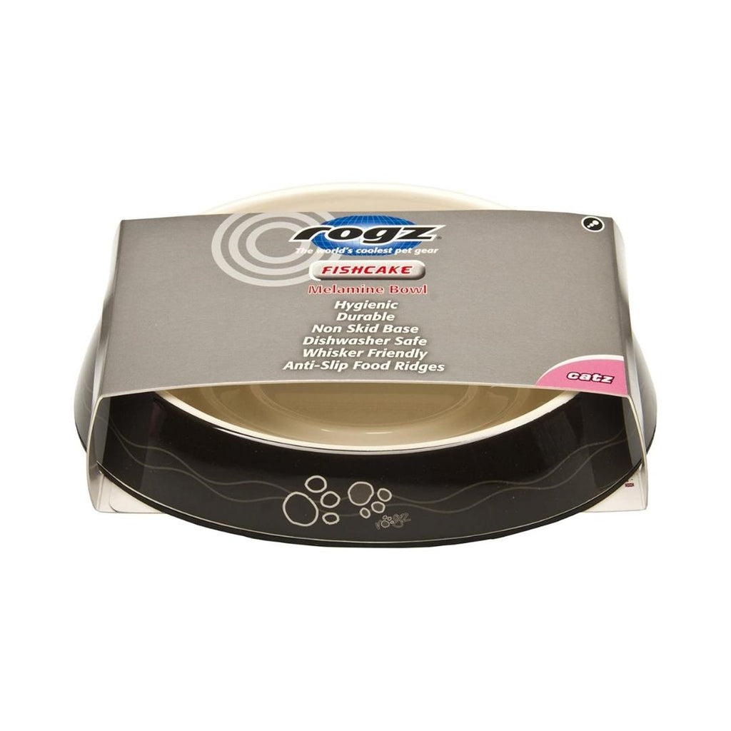 Rogz fish cake cat bowl has a wide rim and a shallow base to accommodate a cat's whiskers and short snout. It is easy to clean and dishwasher friendly.