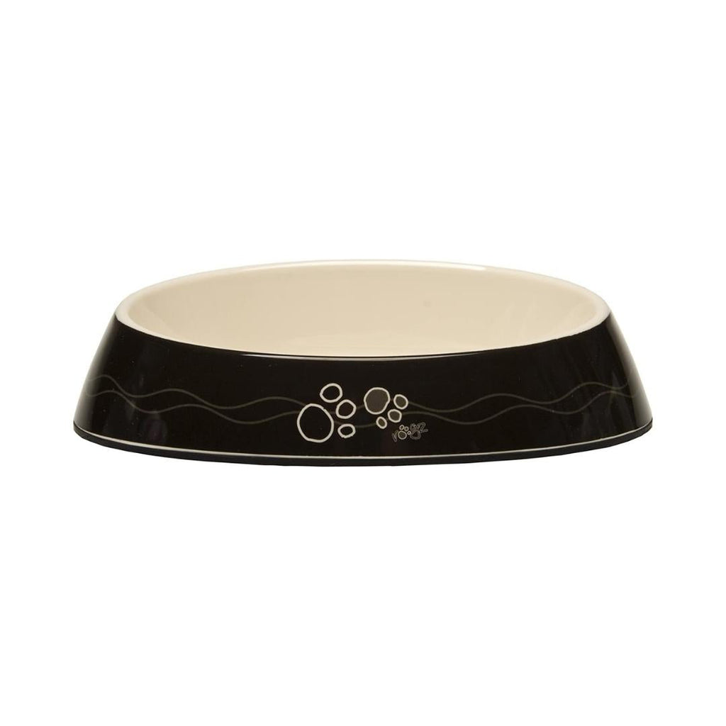 Rogz fish cake cat bowl is durable, UV resistant, and corrosion resistant. It won't sustain any damage, even if your cat is a little rough with it. Available in black paws pattern.