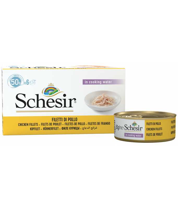 The main ingredient of the recipe is chicken All ingredients selected by Schesir are 100% natural Steamed and hand-processed ingredients