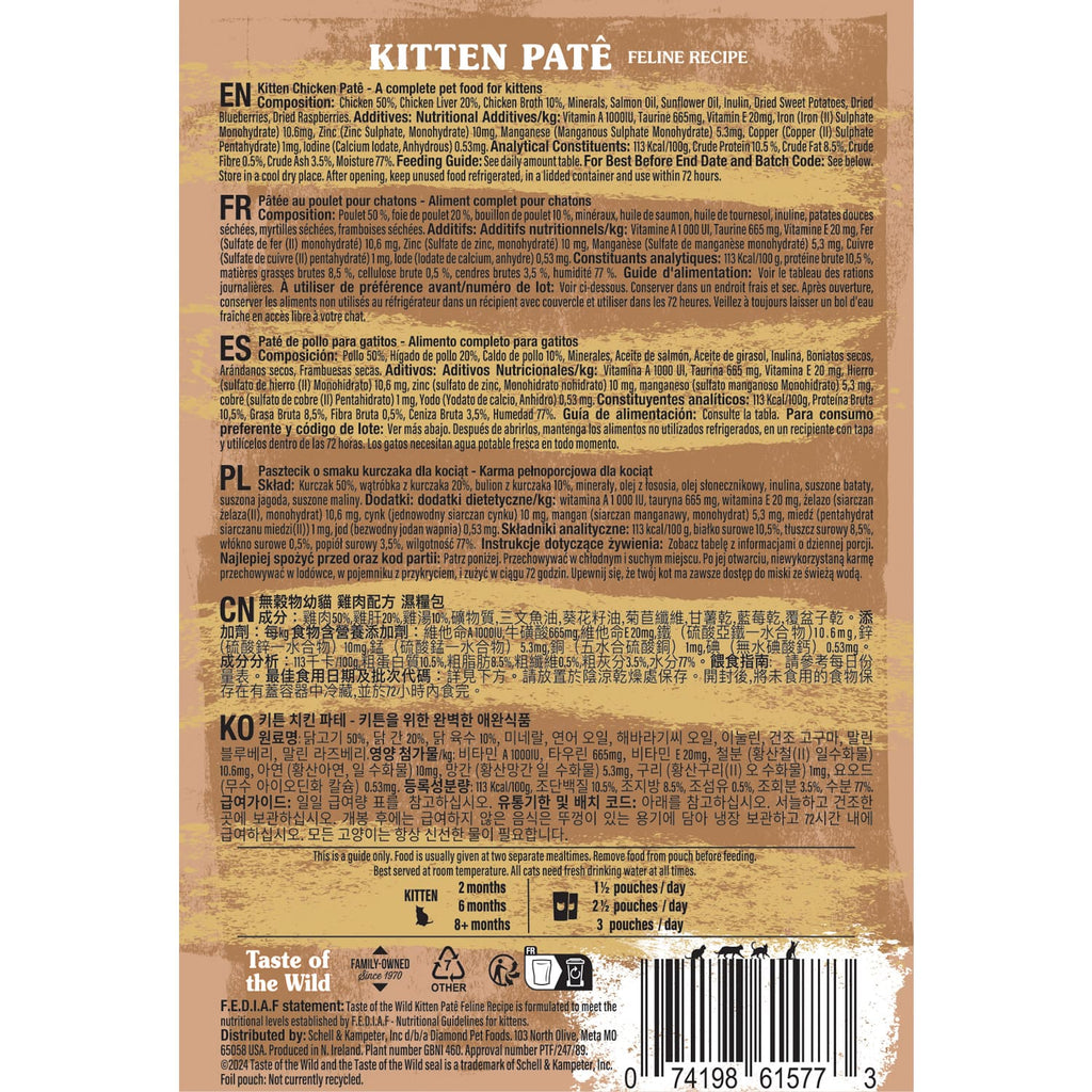Composition: Chicken 50%, Chicken Liver 20%, Chicken Broth 10%, Minerals, Salmon Oil, Sunflower Oil, Inulin, Dried Sweet Potatoes, Dried Blueberries, Dried Raspberries.