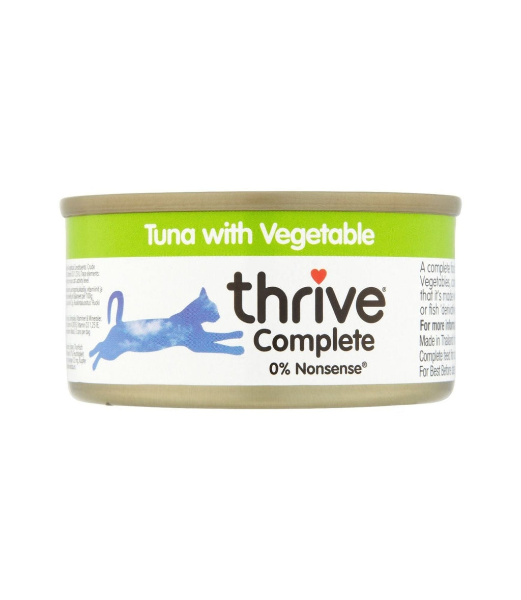 Thrive Complete Cat Tuna With Vegetable Wet Food, Made with Tuna Fillet – the only source of protein. Thrive Tuna is cooked in a fish broth with added vitamins and minerals to give your cat a completely nutritionally balanced meal.